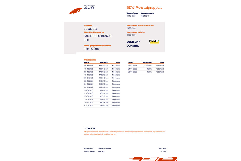 Kilometerstand 180157 km |